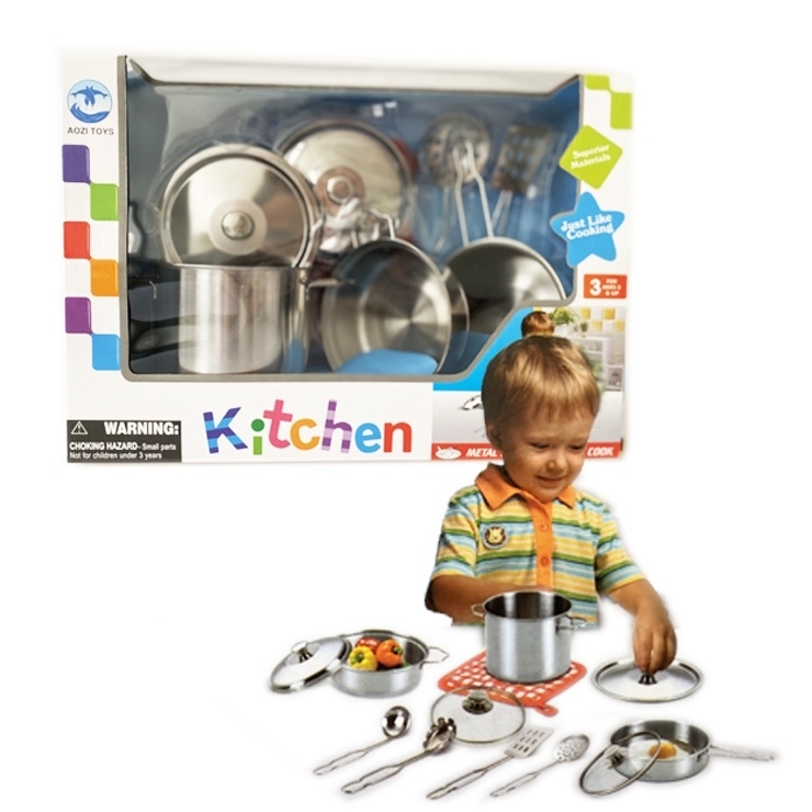 Souprava podporuje hru, rozvíjí fantazii dítěte a napodobuje skutečné kuchyňské náčiní. Hračka je zabalena v krabičce. Všechny prvky jsou vyrobeny z kovu. prečítať celé