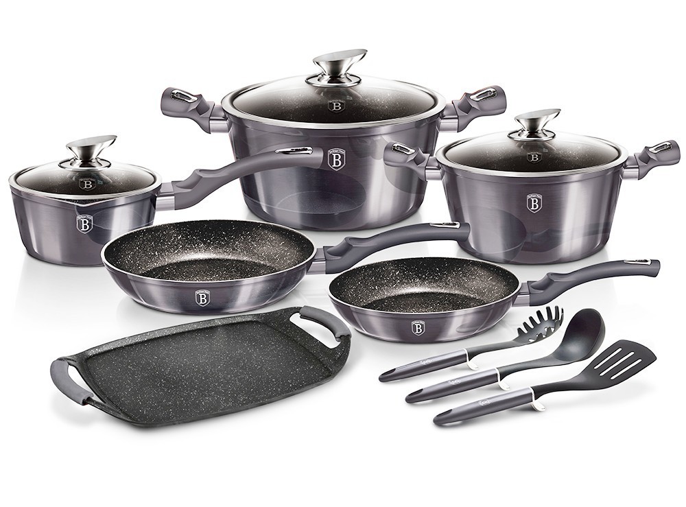 BERLINGERHAUS Sada nádobí s mramorovým povrchem 12+2 ks Carbon PRO Line BH-6911