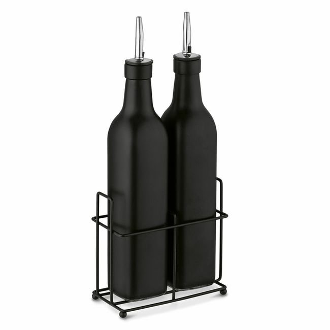 láhev 0,50l ČERNÁ, 2ks, ocet a olej, stojan chrom