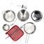 Set do kuchyně, obsah soupravy je 1x hrnec s rukojetí, 1x utěrka, 2x hrnec, 1x poklice, 1x mísa, 1x naběračka, 1x sada. paličky. Rozměry balení jsou 21x34x5cm. hmotnost produktu bez obalu [kg]: Výrobek je určen pro děti ve věku: 3+. prečítať celé