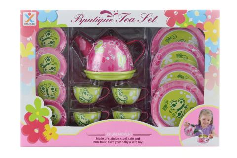 Krásná barevná sada plechového čajového setu a motýlky. Balení obsahuje konvičku, 4 šálky, 4 podšálky a 4 talířky. Baleno v krabici. Rozměry balení cca 31,5x22x9 cm. Věk 3+ prečítať celé