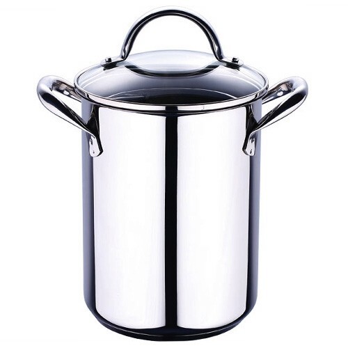 Tento pevný a elegantný hrniec je vyrobený z kvalitnej nerezovej ocele s lesklým povrchom, čo zaručuje jeho dlhú životnosť a jednoduchú údržbu. Vďaka sendvičovému dnu je zabezpečené rovnomerné rozloženie tepla, čo zabraňuje pripáleniu a zrýchľuje varenie. Praktický vyberateľný parák umožňuje pohodlne variť cestoviny či špargľu, bez toho aby ste ich museli z hrnca vyberať. Hrniec má objem 4,2 litra a rozmery priemer 16 x 21 cm, čo je ideálna veľkosť pre rodinné varenie.
