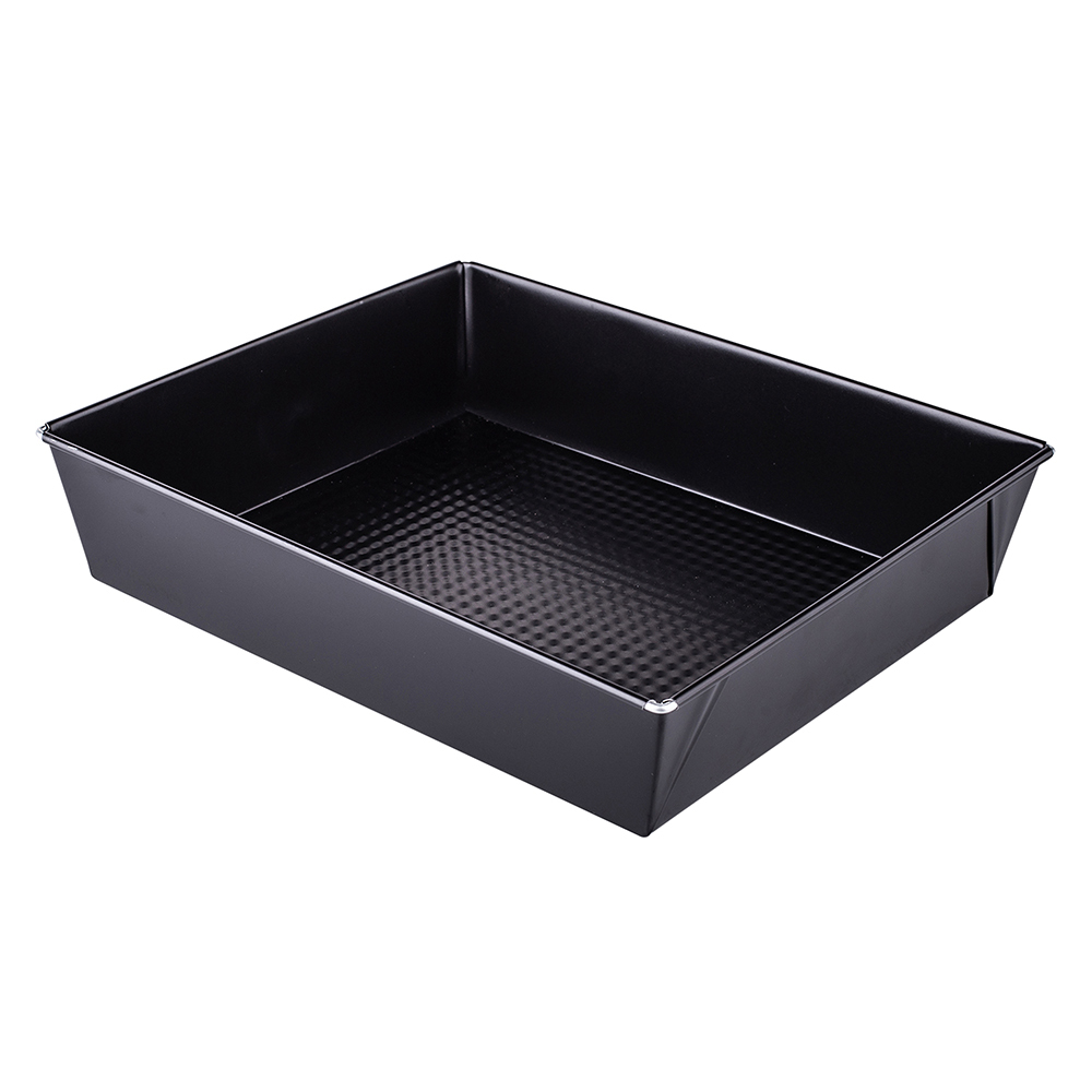 Domowe ciasta są niezwykle pyszne. Aby przygotowanie wypieków sprawiało jeszcze więcej przyjemności, warto zaopatrzyć się w odpowiednie formy do pieczenia. Prostokątna blacha czarna/szara o wielkości 280x235x60 mm, pomoże w przygotowaniu pysznych domowych wypieków. Fakturowane dno zapobiegnie przywieraniu ciasta. Dzięki nieprzywierającej powierzchni non-stick oddzielenie gotowego ciasta od formy nie będzie stanowić żadnego problemu. Odporna na wysokie temperatury.