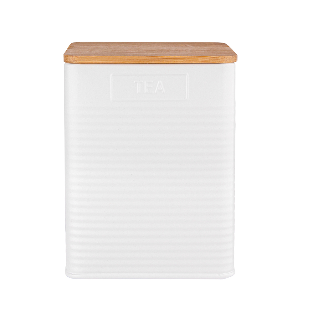 HRANATÁ PLECHOVÁ DÓZA S BAMBUSOVÝM VÍČKEM 11X11X14CM LOFT BÍLÁ TEA