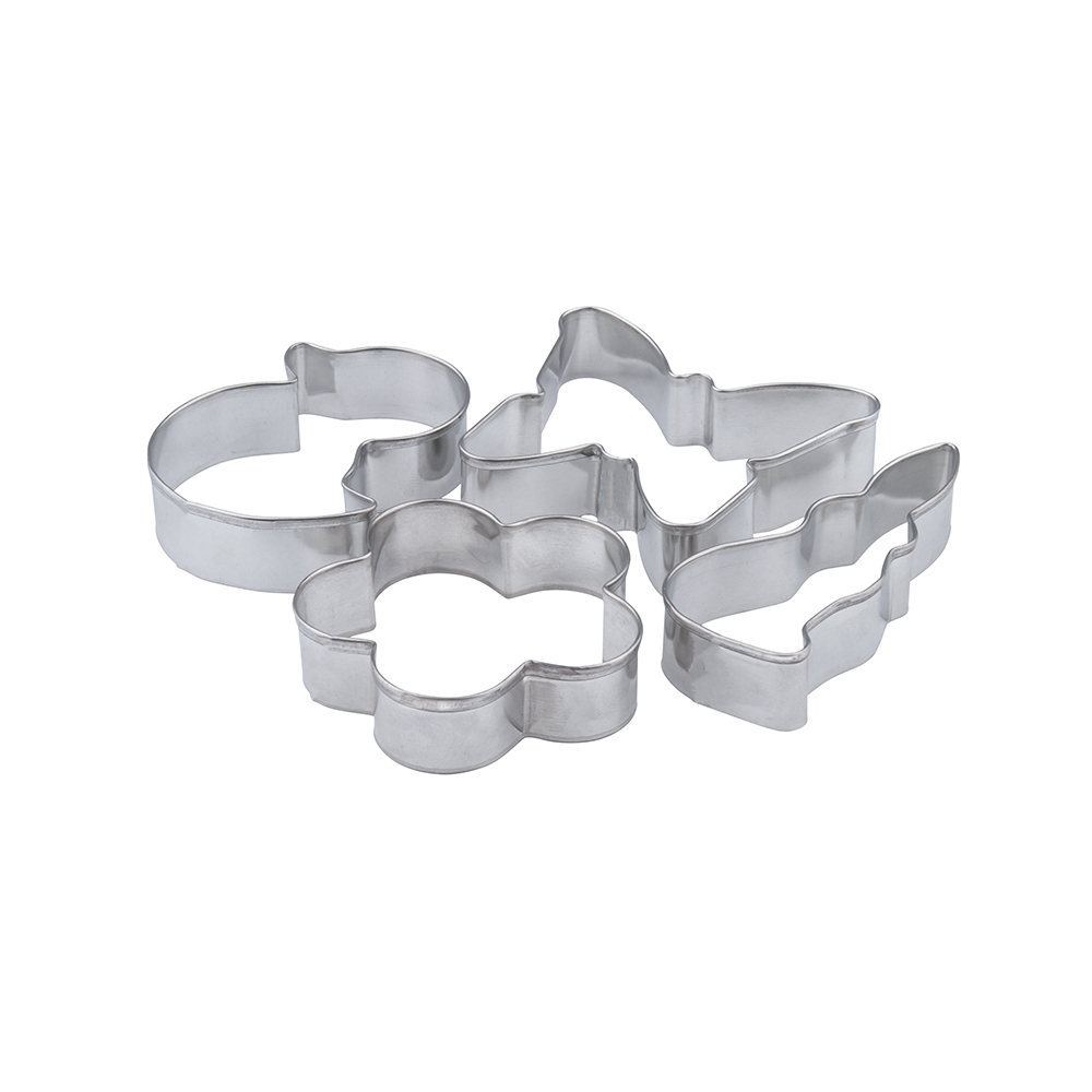 Foremki wielkanocne. Komplet 4 stalowych foremek w kształcie: kaczuszki, zajączka, motylka i kwiatka. Ostre krawędzie ułatwią wykrojenie odpowiedniego kształtu z ciasta. Wykonane z gładkiego materiału, dzięki czemu są łatwe w utrzymaniu czystości. prečítať celé