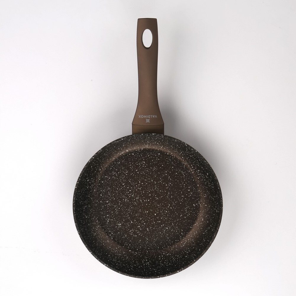 Patelnia VALDINOX AURUM wykonana jest w technologii odkuwanego aluminium , dzięki czemu szybko i równomiernie się nagrzewa, a także jest bardzo trwała i odporna na odkształcenia. Wewnątrz pokryta jest 2 warstwowa powłoka o doskonałych właściwościach nieprzywierających, odporna na zarysowania i ścieranie. Uchwyty typu soft-touch. Przystosowana do użytku na wszystkich rodzajach kuchenek, także indukcyjnych.