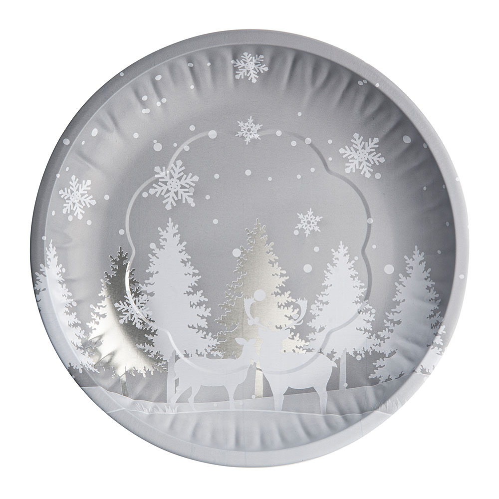 KRUHOVÝ PODNOS PRŮMĚR 26CM OZDOBENÝ STŘÍBRNÝMI STROMEČKY