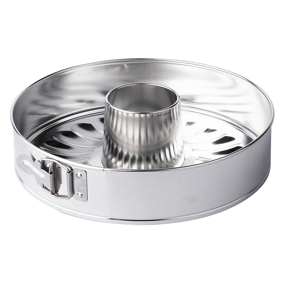 Tortownica. Blacha o średnicy 28 cm, wykonana z blachy ocynowanej. Posiada odpinany bok, który umożliwia proste wyciągnięcie gotowego ciasta oraz dwa dna- okrągłe i do wypieku babki. Odporna na wysokie temperatury, łatwa w utrzymaniu czystości. Ocynowaną blachę należy chronić przed kwaśnymi substancjami, używając folii lub papieru do pieczenia.