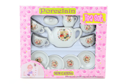 Porcelánový čajový servis. Obsahuje konvičku na čaj, 4 hrníčky s podšálky a konvičku na mléko. Rozměry konvičky na čaj cca 10 x 6 cm. Rozměry balení cca 24,5 x 20,5 x 4,5 cm. Věk 3+ prečítať celé