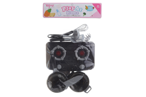 Sada nádobí s vařičem. Balení obsahuje vařič o velikosti cca 23 x 13 cm, hrnec, pánev, 2 pokličky, nůž a další doplňky. Vařič svítí a vydává zvuky. Napájení na 2 AA baterie (nejsou součástí). Rozměry balení cca 27 x 42 x 6 cm. Věk 3+ prečítať celé