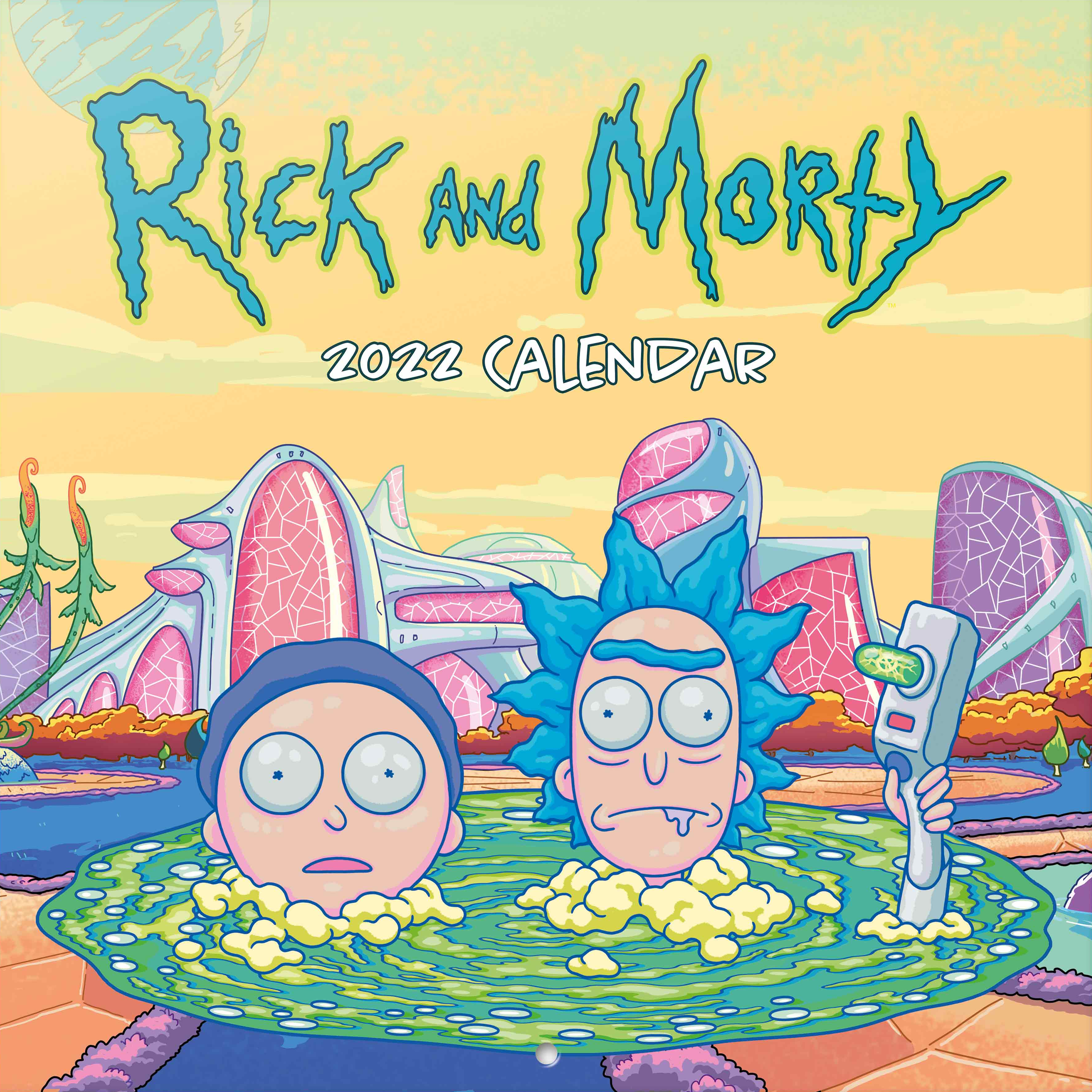 Kalendář s obrázky ze seriálu Rick and Morty pro rok 2022 ve formátu 30 x 30/60 cm.