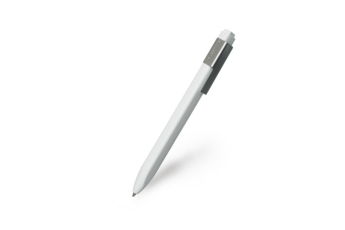 Černá propisovací tužka z ABS plastu. Je vybavena ocelovým klipem, který je možné přidělat k zápisníkům Moleskine. Propiska je hranatá, má ohebný hrot a černou vyměnitelnou náplň. prečítať celé