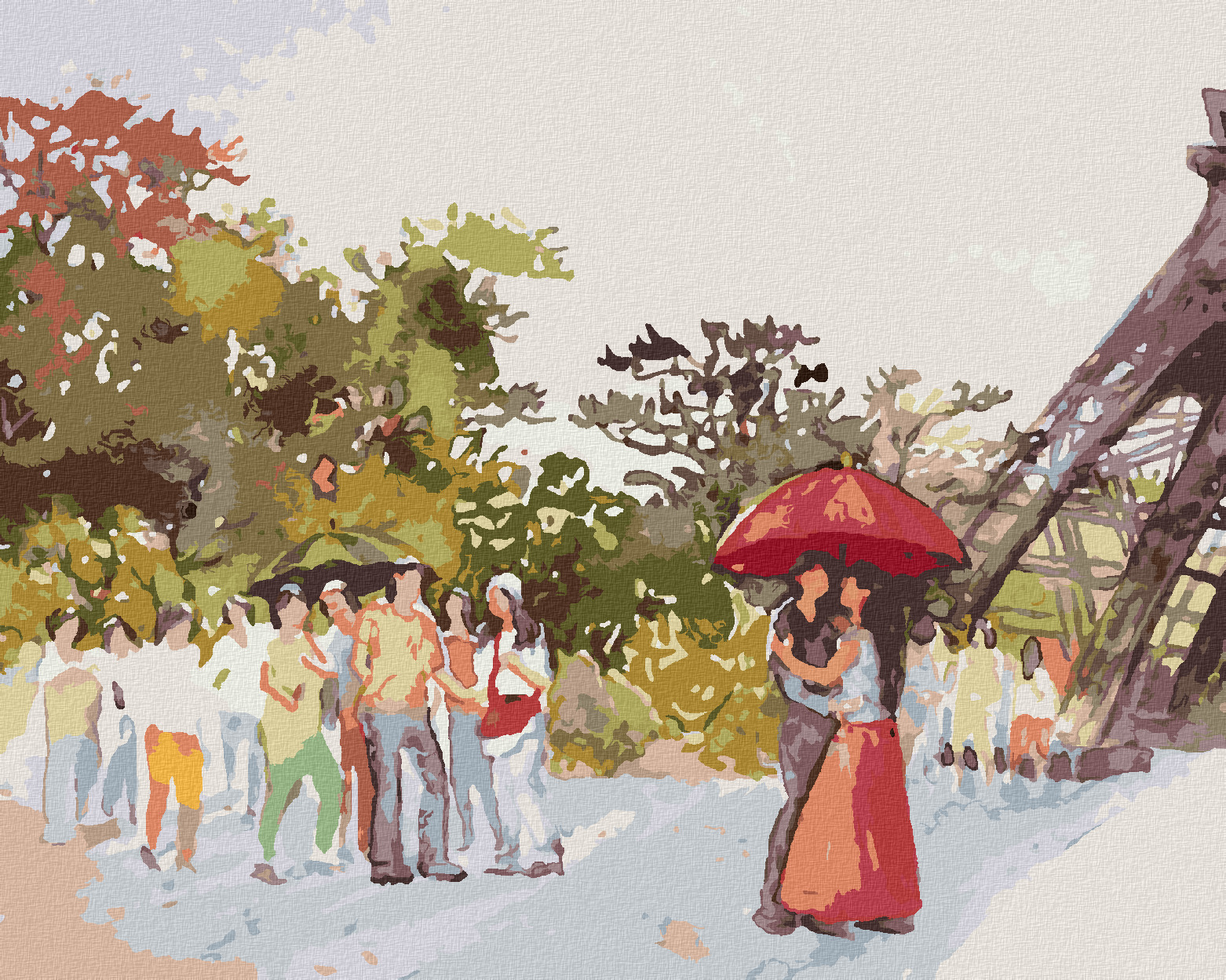 Malování podle čísel - EIFFELOVA VĚŽ A ZAMILOVANÍ LIDÉ - 80x100 cm, vypnuté plátno na rám