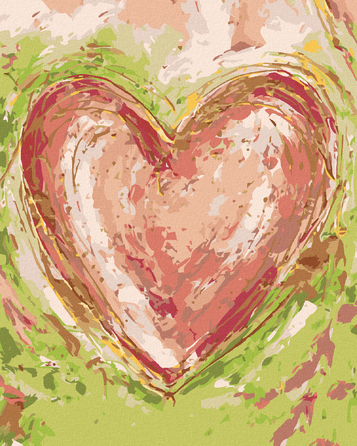 Malování podle čísel - ČERVENÉ SRDCE NA ZELENÉM POZADÍ III (HALEY BUSH) - 40x50 cm, bez rámu a bez vypnutí plátna