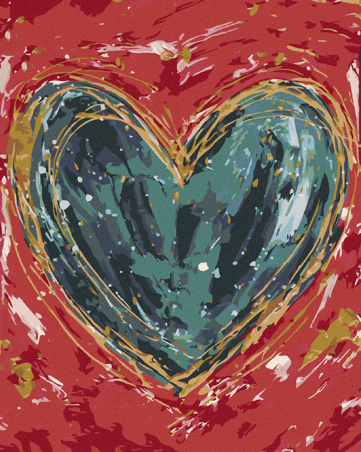 Malování podle čísel - ZELENÉ SRDCE NA ČERVENÉM POZADÍ II (HALEY BUSH) - 40x50 cm, vypnuté plátno na rám
