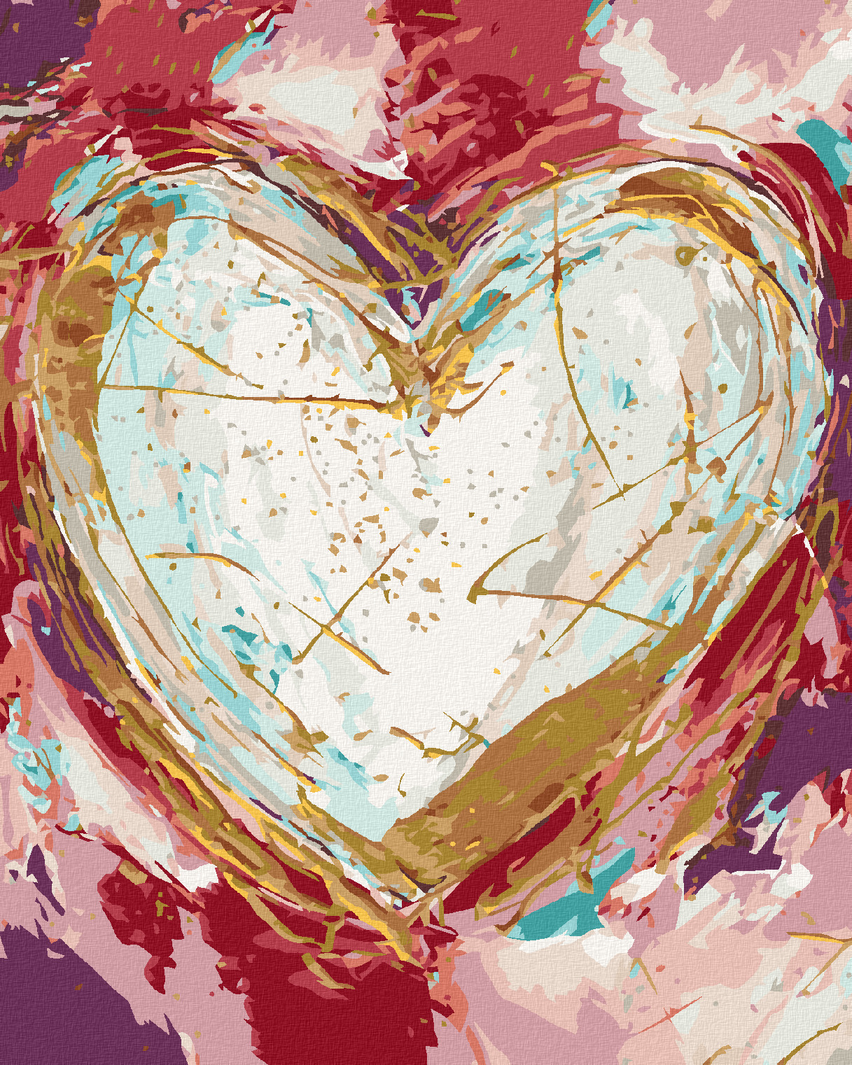 Malování podle čísel - BÍLÉ SRDCE NA BAREVNÉM POZADÍ (HALEY BUSH) - 80x100 cm, vypnuté plátno na rám