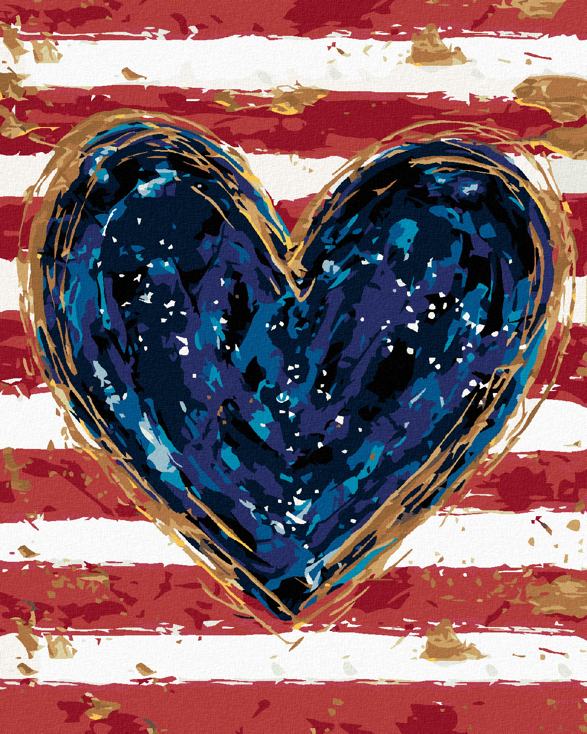 Malování podle čísel - MODRÉ SRDCE S ČERVENÝMI PRUHY (HALEY BUSH) - 40x50 cm, vypnuté plátno na rám