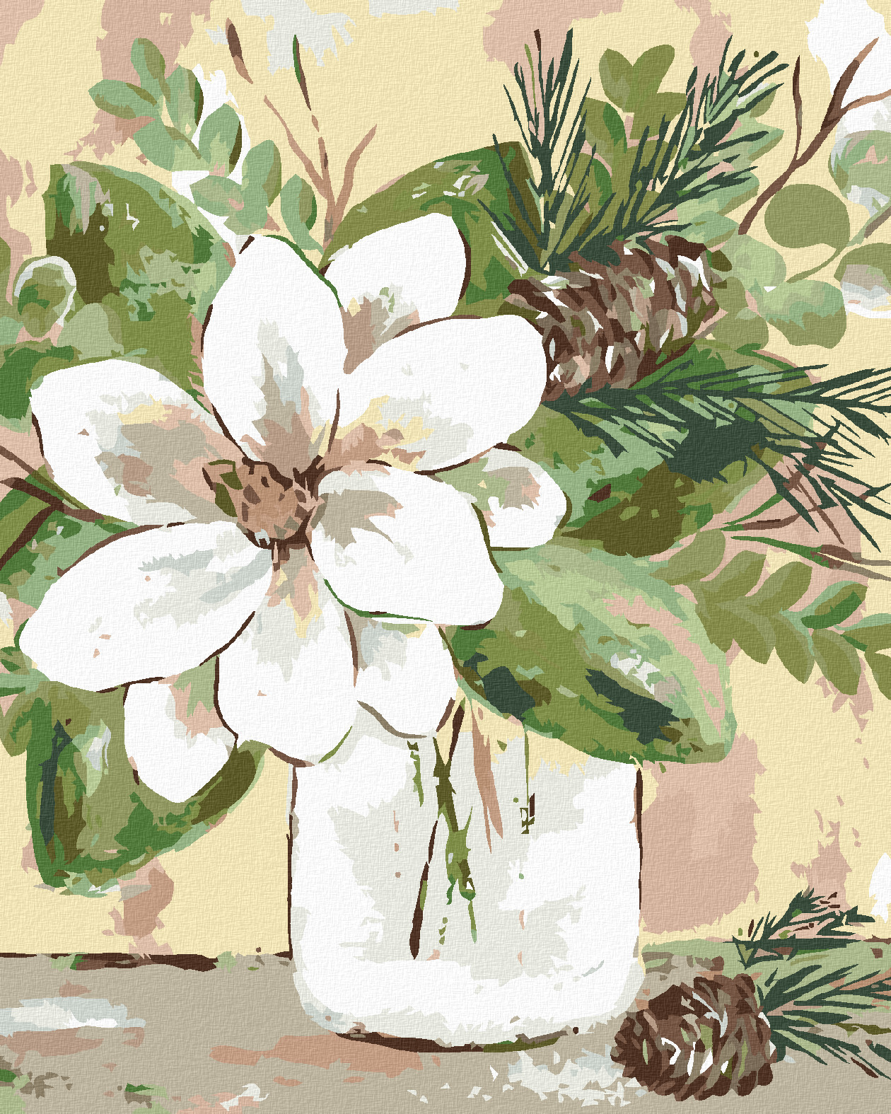 Malování podle čísel - ZIMNÍ MAGNÓLIE VE SKLENICI (HALEY BUSH) - 80x100 cm, bez rámu a bez vypnutí plátna