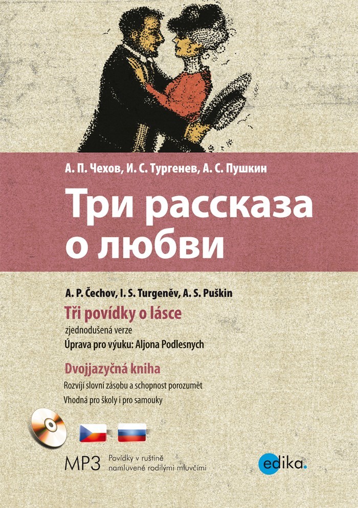 V této knize představujeme ve zkrácené podobě vhodným způsobem upravené tři povídky o lásce: A. P. Čechov Dáma s psíčkem, I. S. Turgeněv První láska, A. S. Puškin Dubrovskij. Povídky jsou výbornou variantou pro čtenáře, kteří nemají zkušenost s jazykovými specifiky ruské klasické literatury.Text v jazyce originálu je doplněn českým překladem, poznámkami, otázkami a testy na porozumění. CD je součástí knihy.