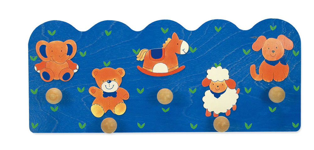 Dřevěný 50 cm dlouhý věšák s jemnými motivy zvířátek.S 5 úchyty. prečítať celé