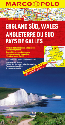 Hauptkarte 1:300 000 mit mehrsprachiger Legende (D, GB, F, NL), beidseitig bedruckt/ 2 Citypläne: - Cardiff - London/ 2 Nebenkarten: - Channel Islands (Alderney, Guernsey, Jersey) - Isles of Scilly; Index: Ortsregister mit Bezirk, Postleitzahl und Suchfeldangabe/ Ausgewählte Sehenswürdigkeiten, Landschafts- und Gewässernamen mit Suchfeldangabe/ Wichtige Verkehrsinformationen/ Blattübersicht
