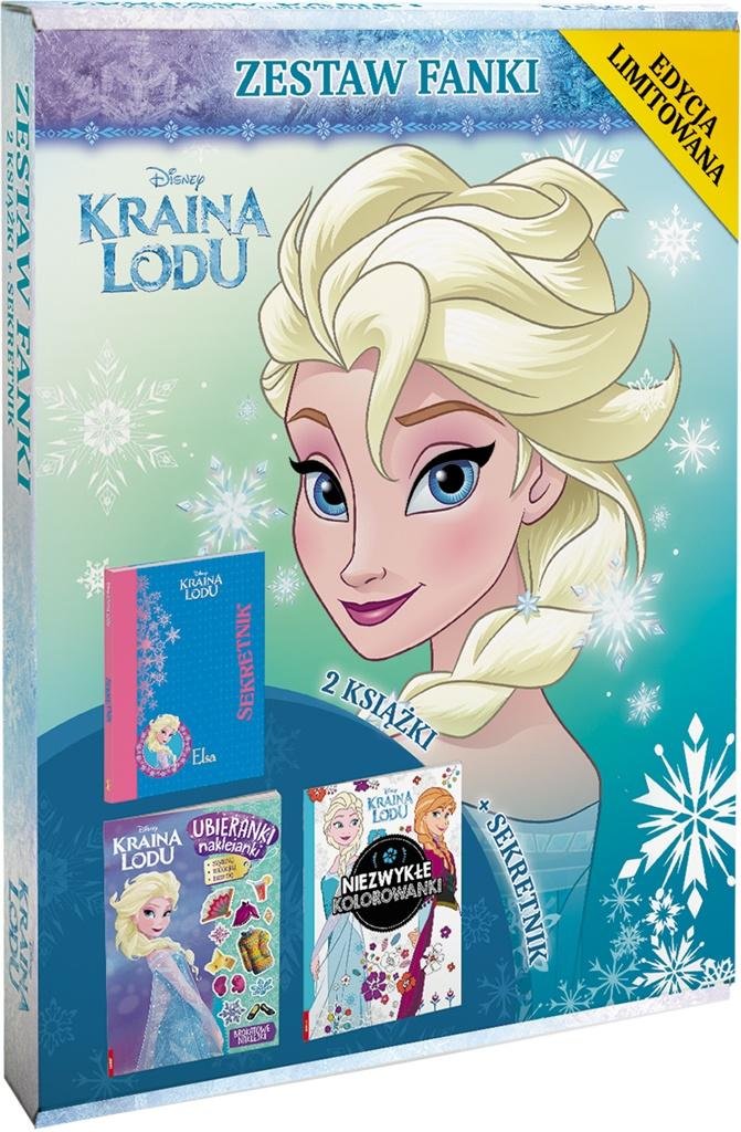 Wyjątkowy zestaw dla wszystkich fanek filmu Kraina lodu.W środku znajdują się:książka dla małych projektantek z naklejkami (w tym takżę 80 brokatowych)książka - sekretnik z miejscem na zapiski, rysunki i zdjęcia oraz naklejkami do ozdabiania stronksiążka ze stronami do kolorowania fantastycznych...