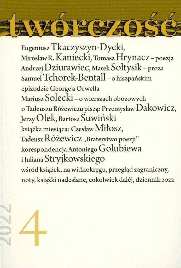 Rok LXXVIII, nr 4 (917), kwiecień 2022Eugeniusz Tkaczyszn-Dycki Wiercińscy. Fragment lamentacji; Niepokólczyccy. Fragment lamentacji; Szczyradłowscy. Fragment lamentacji; Zawalidroga; Urwipołcie; Fragment instalacji; Owieczki; InstalacjaAndrzej Dziurawiec Historia o naszym do nieba...