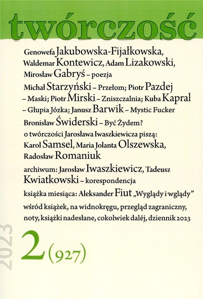 ROK LXXIX, nr 2 (927), luty 2023Genowefa Jakubowska-Fijałkowska 23 lutego 2022; Na wkurwie jestem kilka dni; Vivien Leigh; Chciałam być Polką ale teraz jak; W czasie komuny; Nie mogę wszystkiego powiedzieć; Libido; Nie mam apetytu; Zadzwonił do mnie wieczorem; Po Szymborskiej; Bierzesz...