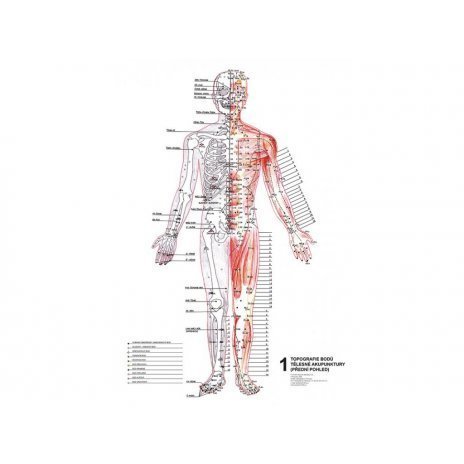 Tři mapy akupunkturních bodů s 12 meridiány a s jejich standardními body (tlumivým, povzbudivým, pramene, přechodu, souzvučným a poplašným) a také některé z mimořádných a mimodráhových bodů nejčastěji užívaných v léčbě. Vzhledem k jednoduchému pochopení jsou body číslovány podle čínské...