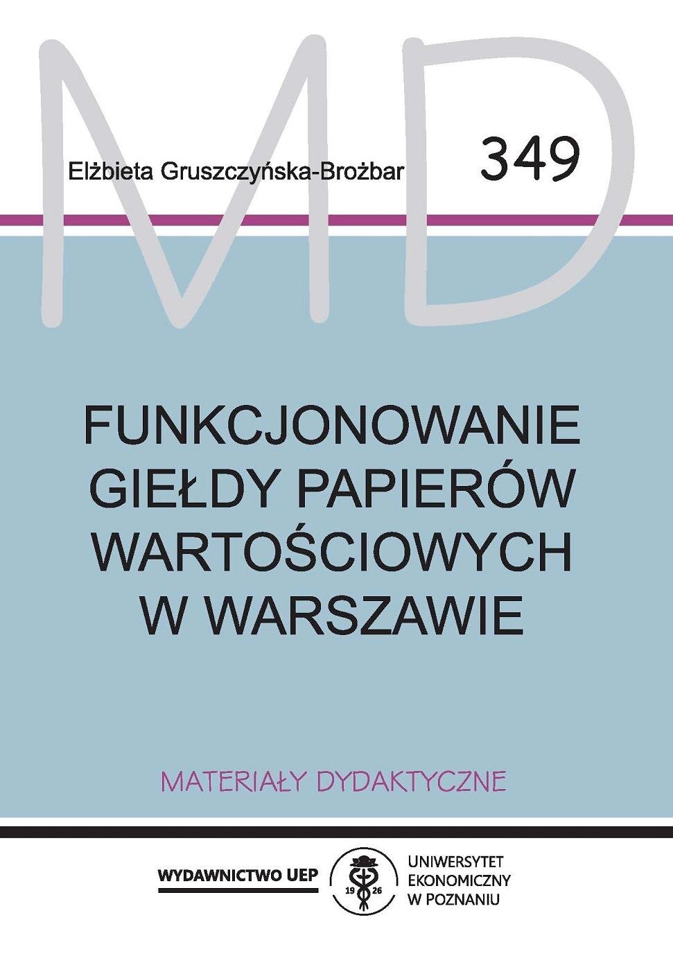 Funkcjonowanie Giełdy Papierów Wartościowych w Warszawie Funkcjonowanie GPW w Warszawie jest dominującym zagadnieniem w ramach przedmiotów z zakresu rynku inwestycyjnego, alokacji kapitału. Jednoczesne ukazanie elementów konstytuujących pojęcie giełdy jest zadaniem trudnym, albowiem wymaga...