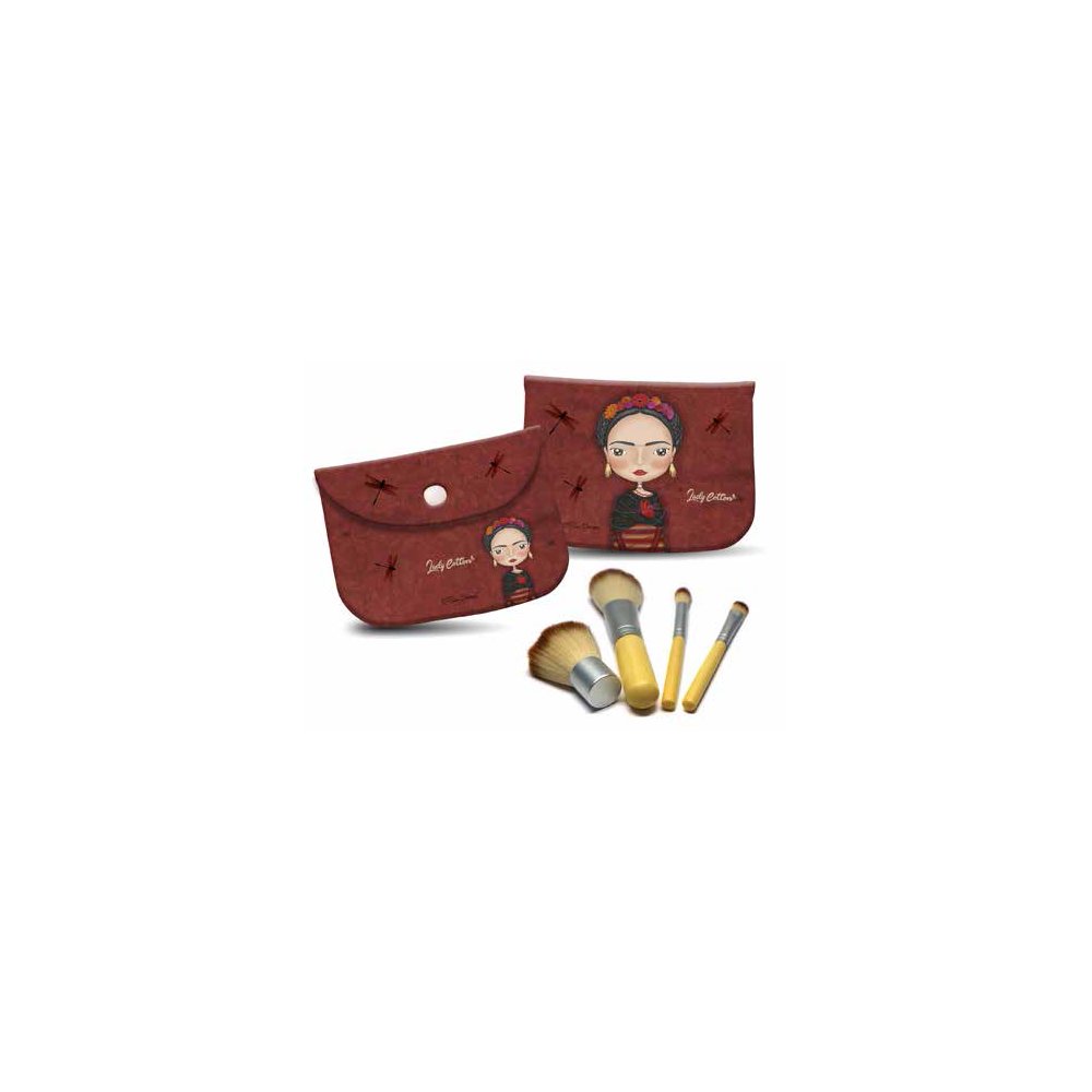 Sada 4 ks základních kosmetických štětců v červené kosmetické taštičce s motivem POKHARA Lady Cotton Frida prečítať celé