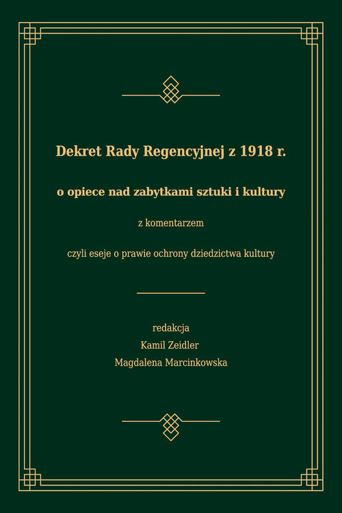 Dekret Rady Regencyjnej z 1918 r. o opiece nad zabytkami sztuki i kultury z komentarzem, czyli eseje (polsky)