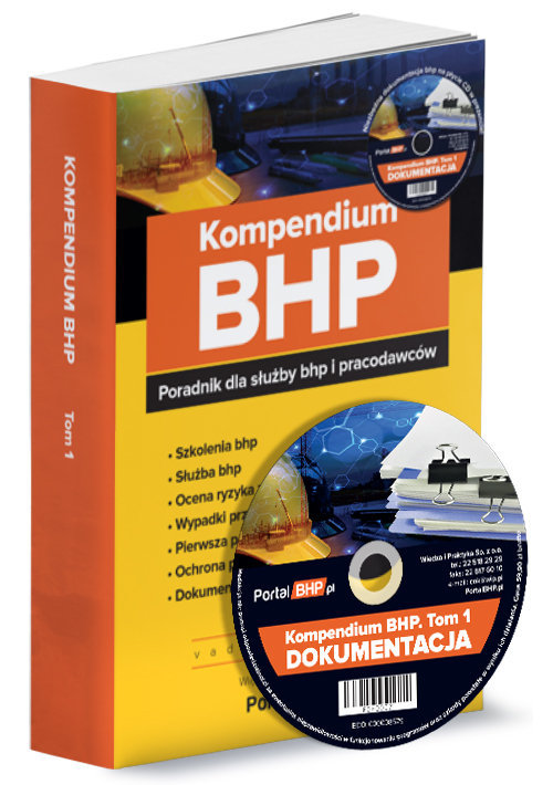 Kompendium bhp to poradnik, który przedstawia najważniejsze aspekty dotyczące bezpieczeństwa i higieny pracy w oparciu o obowiązujące przepisy, dokumenty, wskazówki niezbędne w codziennej pracy służby bhp. Omawiane zagadnienia dotyczą m.in.: szkoleń bhp, służby bhp, wypadków przy pracy, oceny ryzyka zawodowego, pierwszej pomocy, ochrony przeciwpożarowej, a także wzory dokumentów bhp.