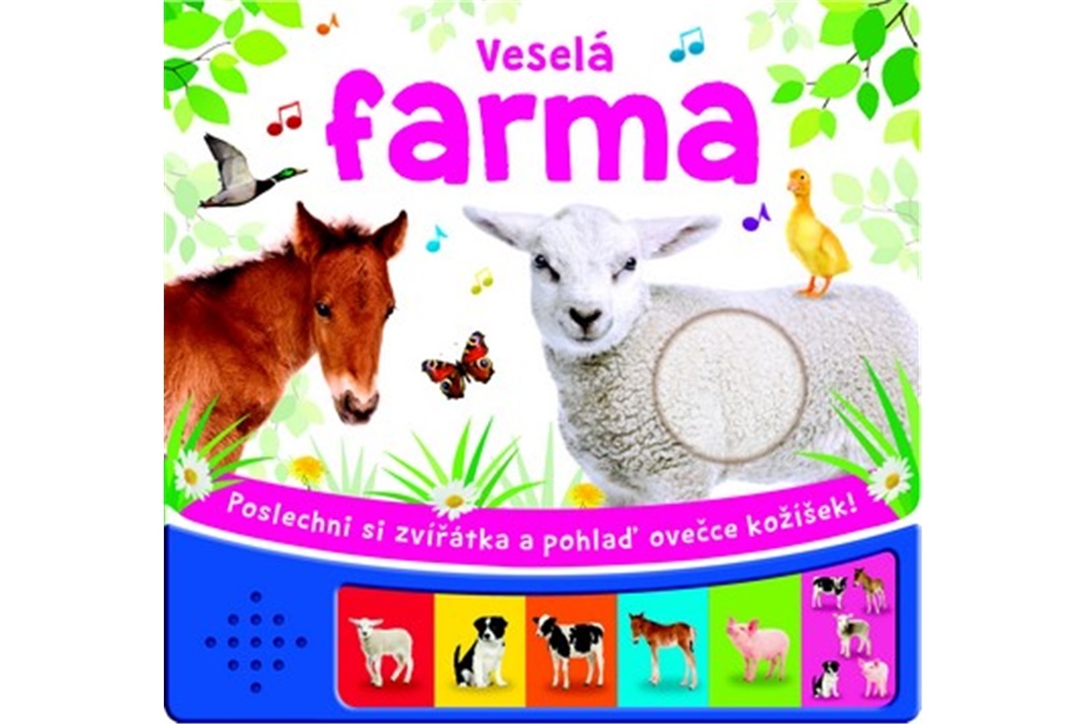 Zvuková knížka Veselá farma představuje zvířátka, jako jsou ovečky, koník, kráva nebo prasátko. Se zvířátky malého čtenáře seznámí hravé verše, milé obrázky a šest zvukových tlačítek, po jejichž zmáčknutí se ozve zvuk pro dané zvíře charakteristický, největší tlačítko přehraje všechny zvuky po sobě. Díky výřezu s měkkým kožíškem si děti mohou i pohladit ovečku.