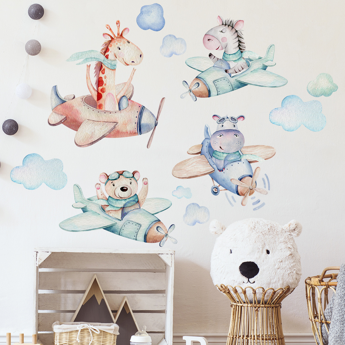 Samolepka na zeď - Letadla a zvířátka
