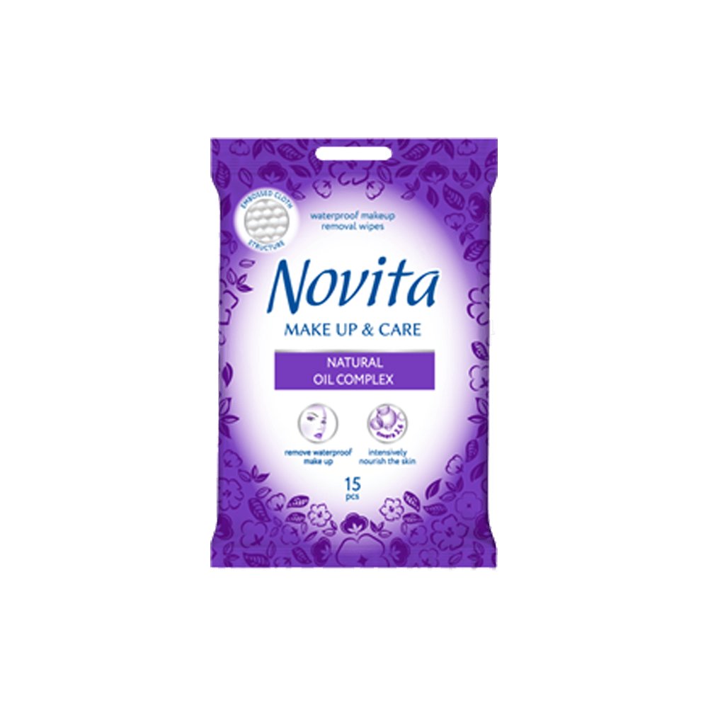 NOVITA ubrousky vlhčené na make-up s přírodními oleji 15 ks