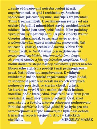 Biblické nepřidáš se k většině, páchá-li zlo, bylo pro nás samozřejmostí a stejně samozřejmá byla naše ochota k účasti na věcech veřejných. A to i v kritických chvílích… Miroslav Masák Miroslav Masák (*1932) se výrazně zapsal do dějin české architektury šesti posledních desetiletí. S autorem...