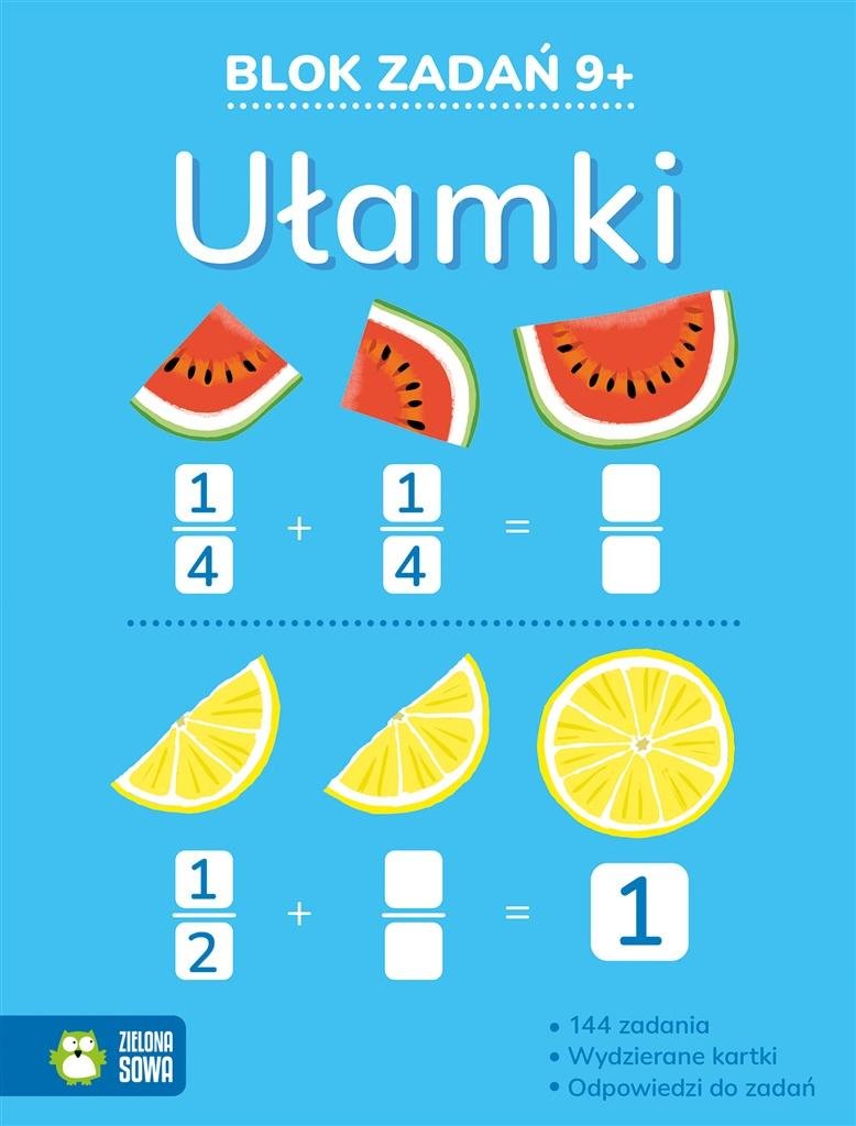 Blok zadań to świetna pomoc w nauce ułamków. Znajdziesz w nim atrakcyjne i różnorodne zadania, które sprawią, że ułamki już nigdy nie będzie sprawiała kłopotu.