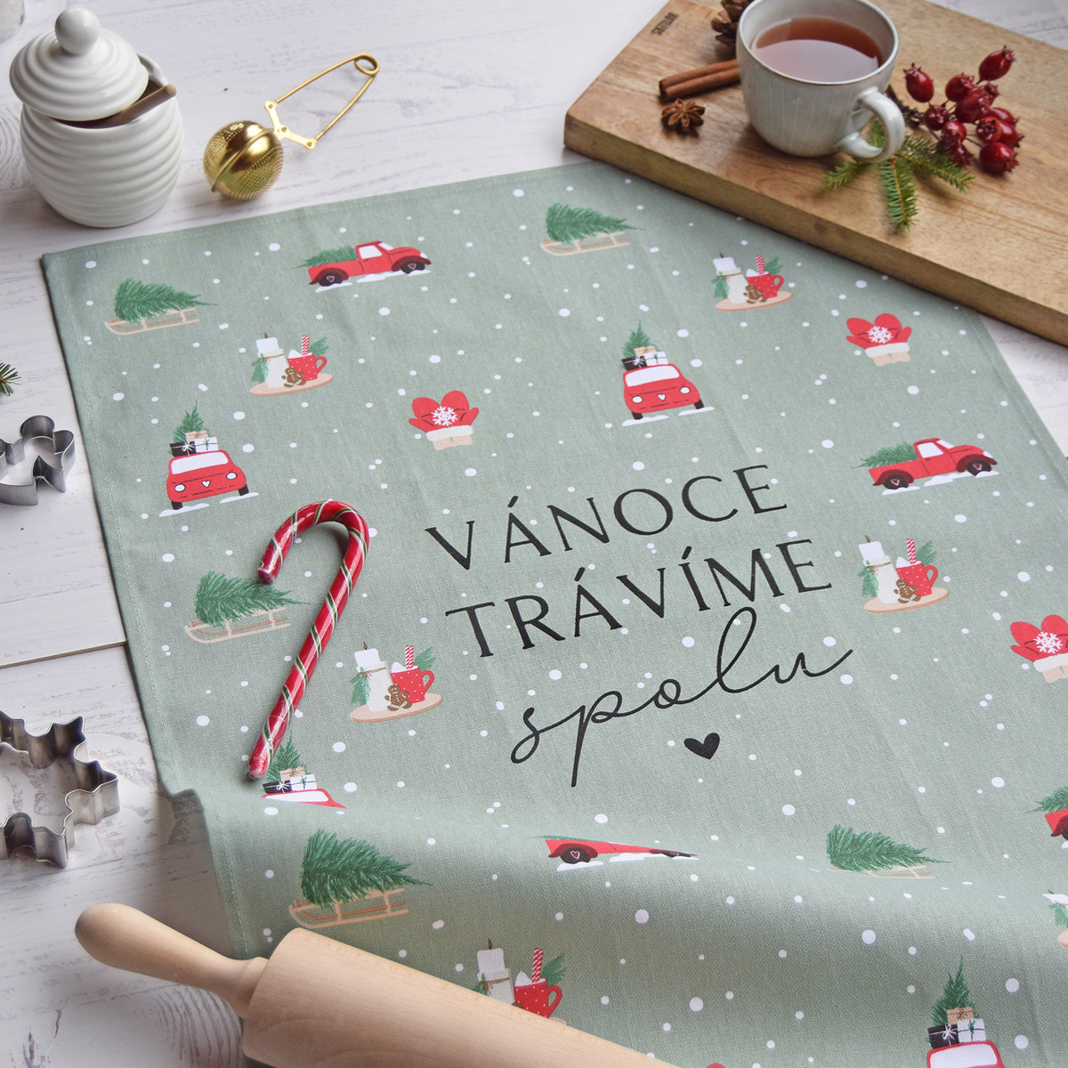 Vánoční bavlněná utěrka - Vánoce trávíme spolu