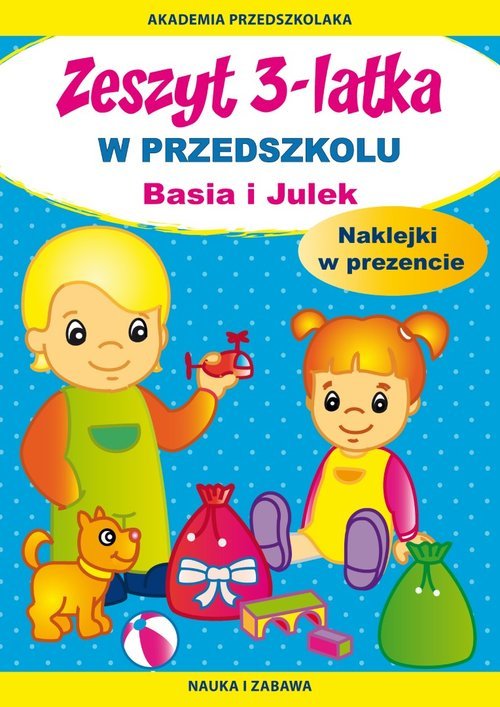 Doskonałe połączenie nauki i zabawy dla trzylatków - dzieci rozwiązują różnorodne zadania edukacyjne, kolorują obrazki i wklejają naklejki we właściwe miejsca. Dodatkowe atuty tej książki to duże, wyraźne ilustracje z grubymi konturami i tematyka związana z edukacją przedszkolną.