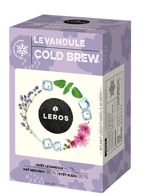 Levandule Cold brew je ylinná směs s levandulí a meduňkou pro přípravu „cold brew“, osvěžujícího ledového nápoje, který vás uchvátí svou netradiční barvou, a navíc přispěje k navození pohody a dobré nálady. Levandule se pro svou jedinečnou vůni a chuť používá například v provensálské kuchyni a podobně jako meduňka zklidňuje mysl a má příznivý vliv na nervovou soustavu. Květy slézu pak dodávají nápoji jedinečnou, přírodní modrou barvu.