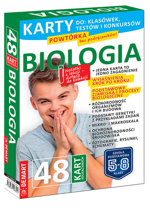 Biologia w szkole podstawowej jest nauczana w klasach V-VIII. Karty edukacyjne zastępują aż cztery podręczniki, gdyż pakiet 48 dwustronnych, kolorowych kart edukacyjnych obejmuje wszystkie ważne tematy z biologii uwzględnione w podstawie programowej. Jedna karta prezentuje jeden temat. Format...