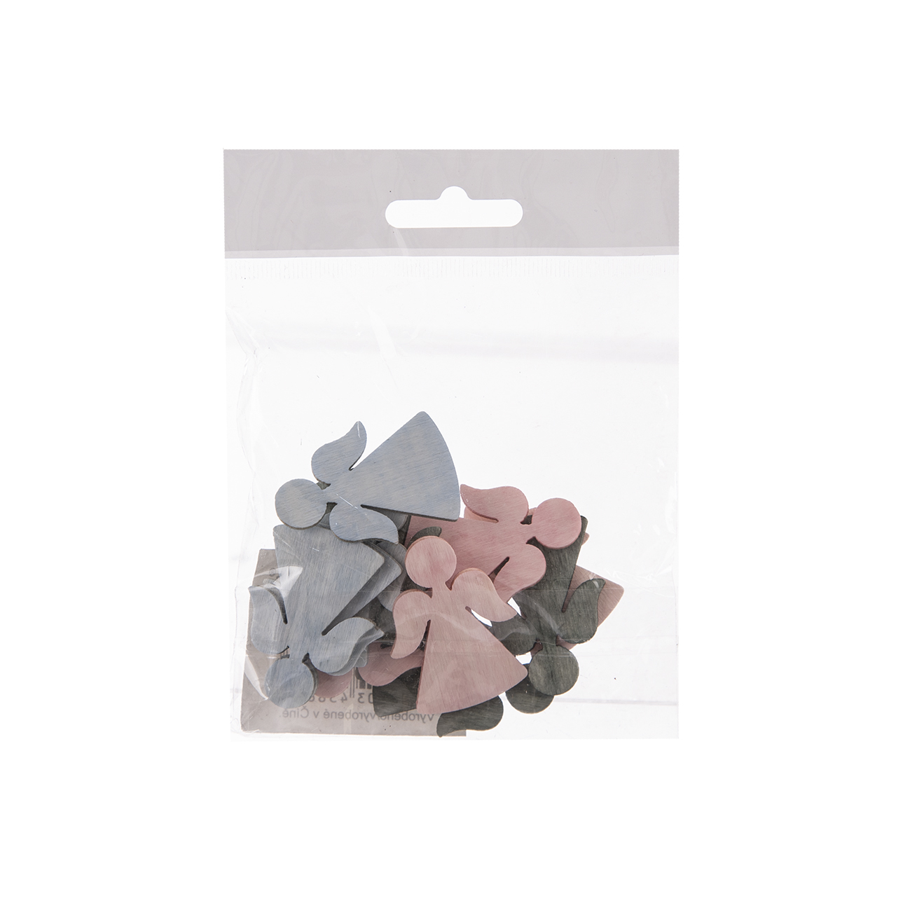 Přízdoba dřevo anděl růžový/modrý 12 ks 4 cm