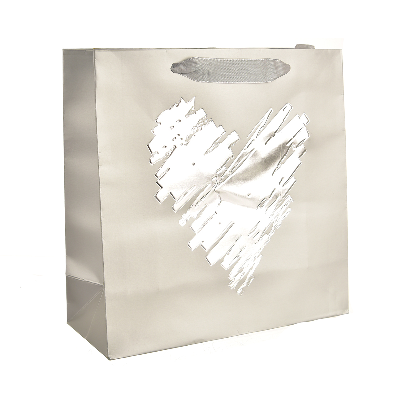 Taška dárková šedá srdce 25x10x25 cm