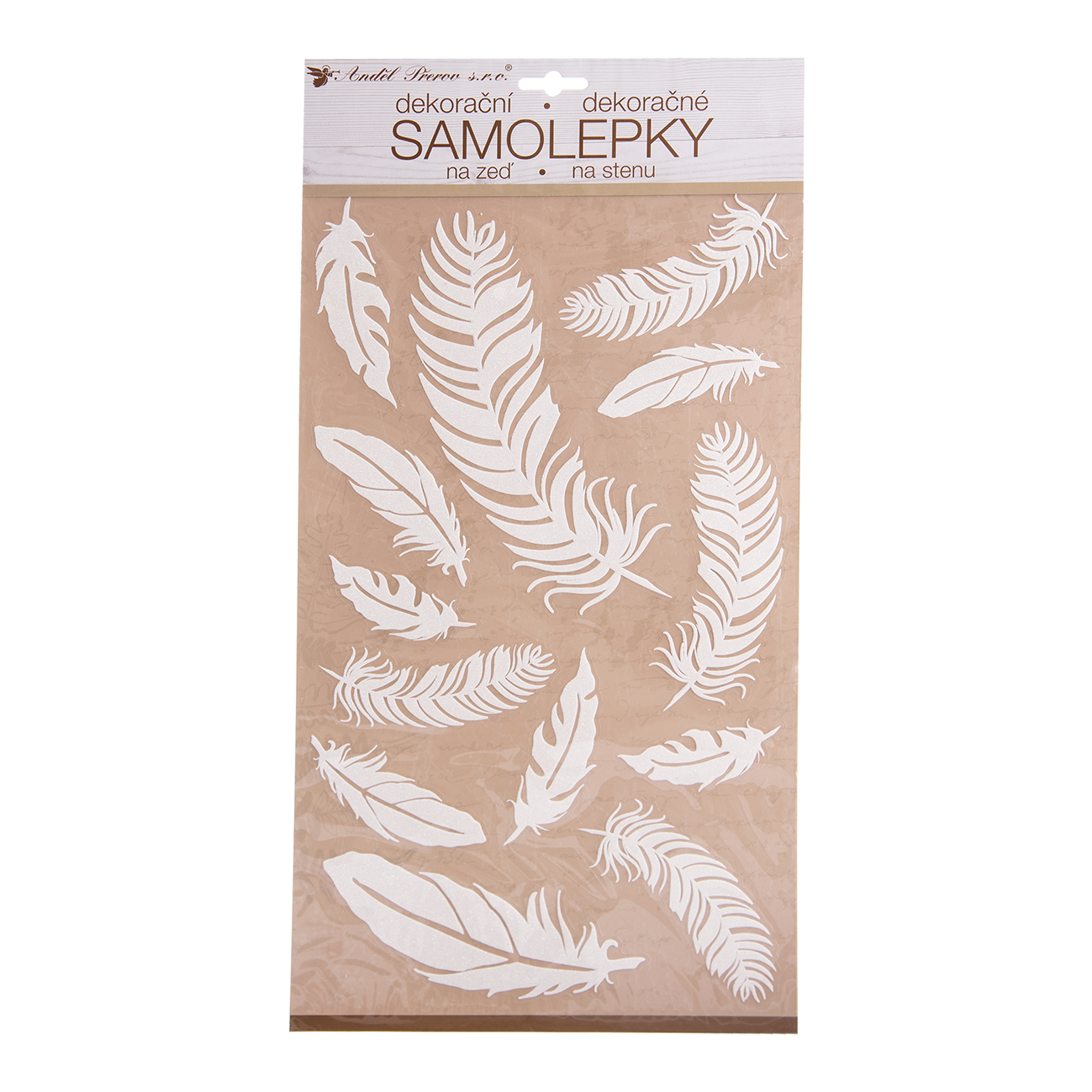 Samolepky na zeď pírka bílá glitr 24x47 cm