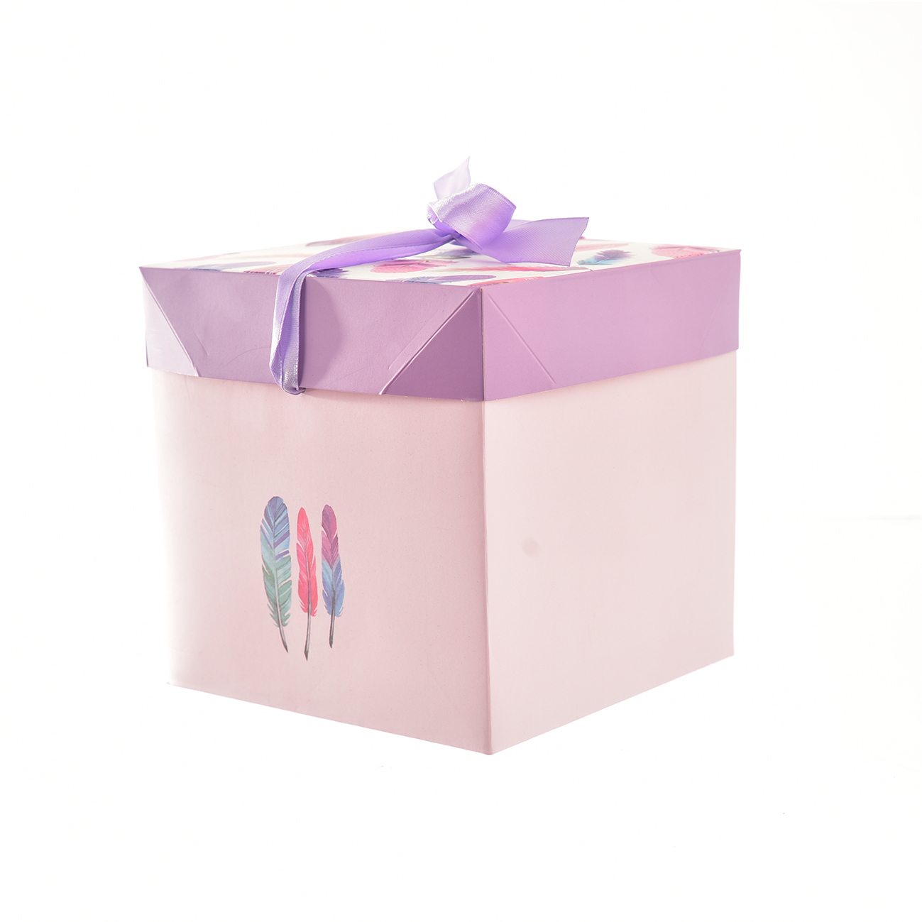 Krabice dárková papír peříčka růžová 17x17x17 cm