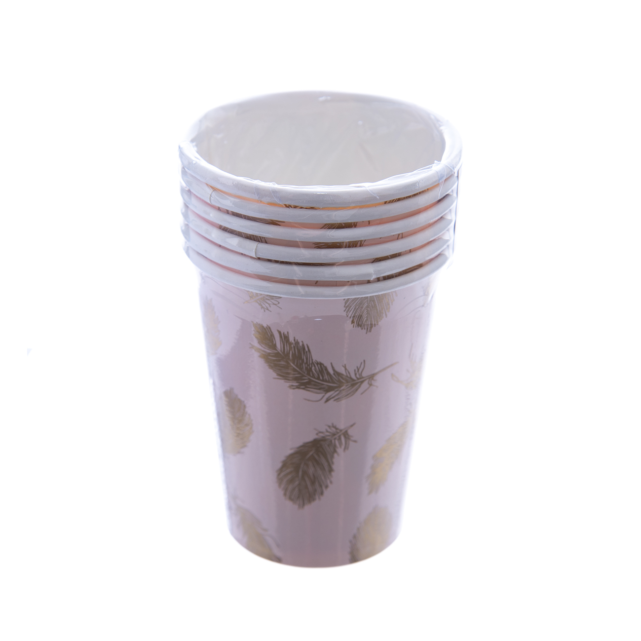Kelímek papír párty peříčka bílá/zlatá 6 ks 220 ml