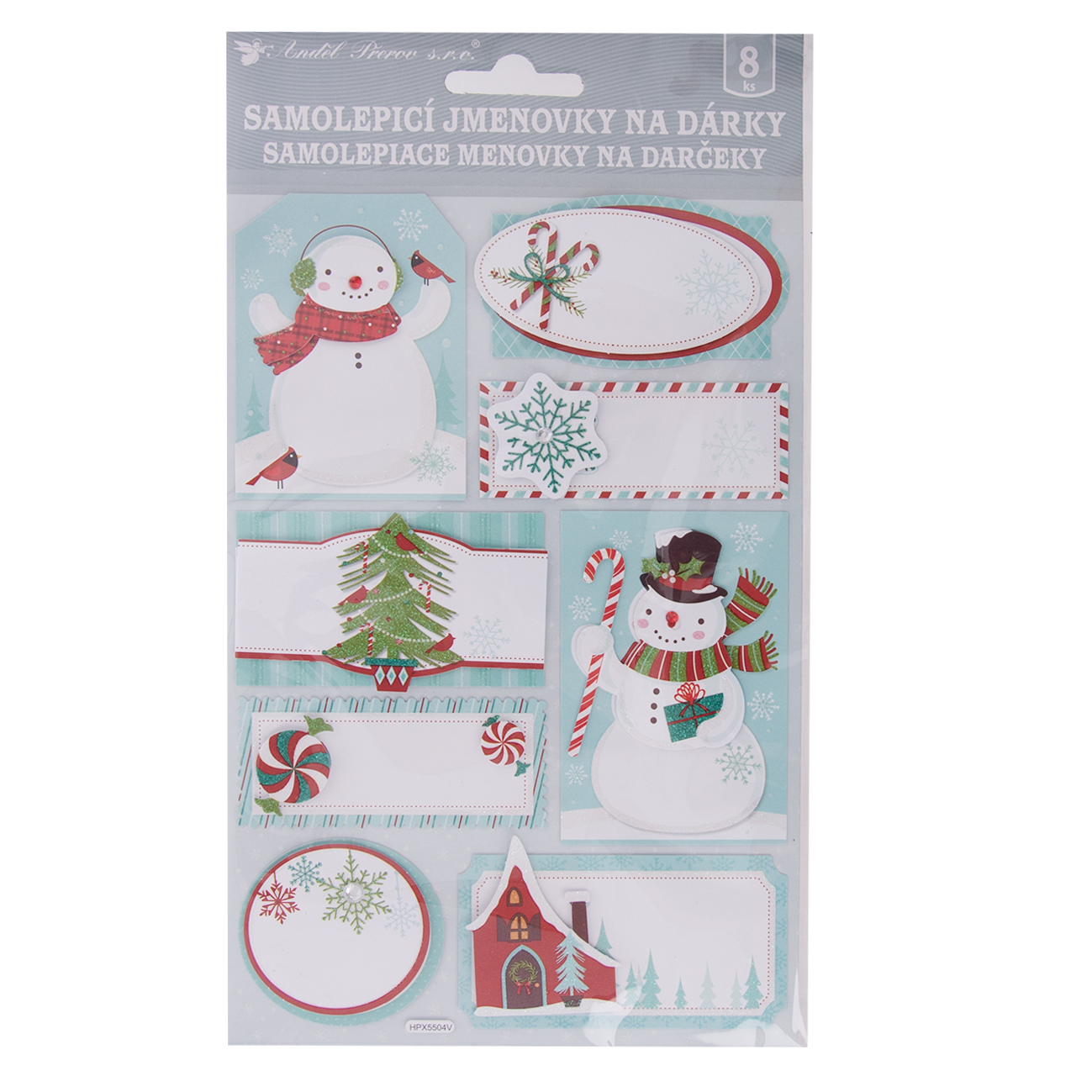 Jmenovka na vánoční dárky 3D glitr 8 ks 14x21 cm