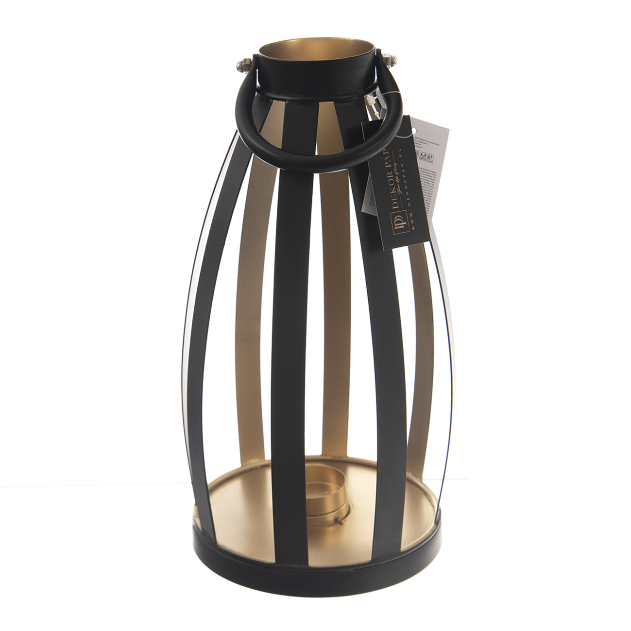 Svícen kov černý/zlatý 15x15x30 cm