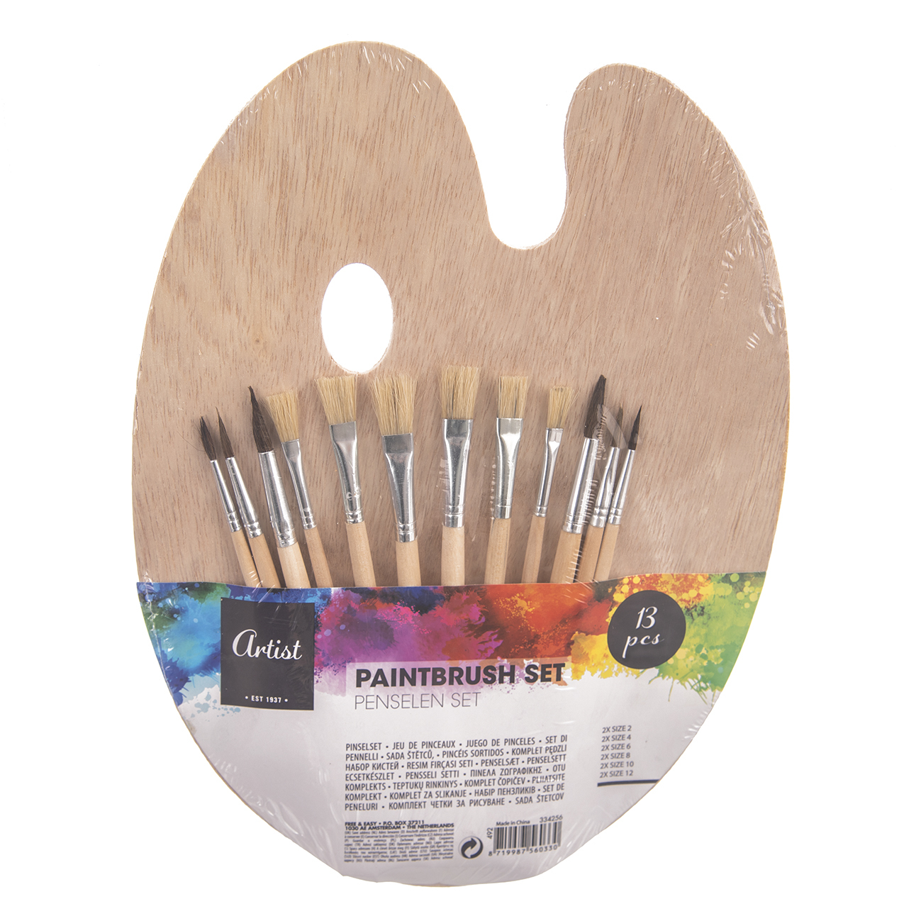 Paleta drevo+štetce maliarske sada 12 ks 25x31 cm